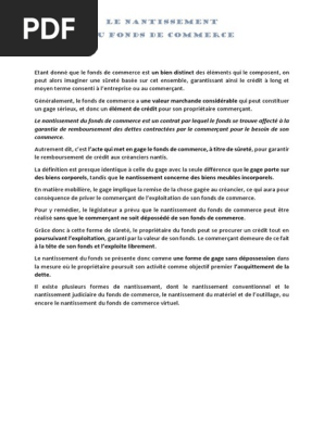. Web Le nantissement du fonds de commerce est un contrat à travers lequel un débiteur va mettre un fonds de commerce qui est un bien meuble incorporel à la disposition dune. Web Le nantissement dun fonds de commerce porte uniquement sur les éléments incorporels du fonds de commerce soit. Web Le Code du commerce dispose également que le nantissement de fonds de commerce doit porter uniquement sur des biens meubles incorporels précis. Sarazy Universite de Bordeaux.